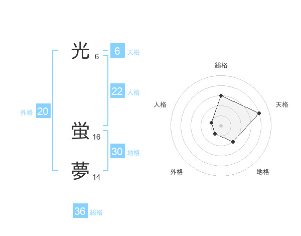 光 蛍夢さんの天格は6画の4点!