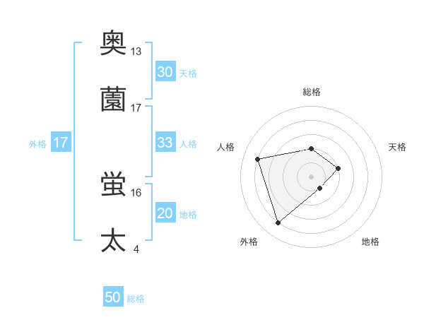 奥薗 蛍太さんの総格は50画の2点!