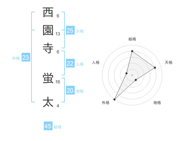 西園寺 蛍太さんを姓名の画数から五運を鑑定