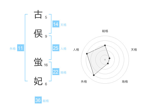 古俣 蛍妃さんを姓名の画数から五運を鑑定
