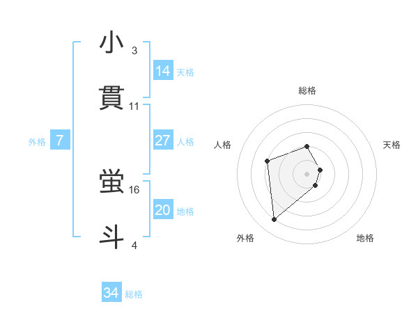 小貫 蛍斗さんを姓名の画数から五運を鑑定
