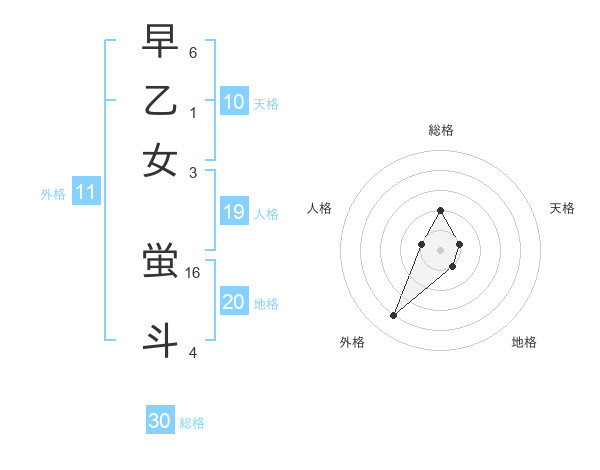 早乙女 蛍斗さんを姓名の画数から五運を鑑定
