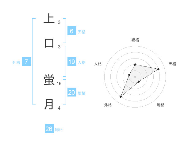 上口 蛍月さんを姓名の画数から五運を鑑定