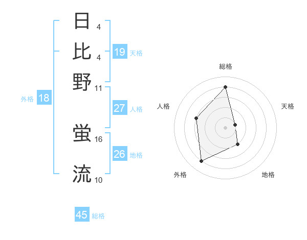 日比野 蛍流さんを姓名の画数から五運を鑑定