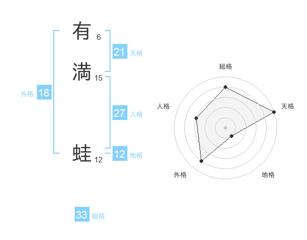有満 蛙さんの総格は33画の4点!