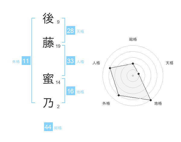 後藤 蜜乃さんの総格は44画の2点!