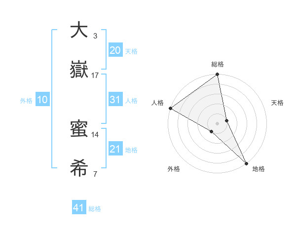 大嶽 蜜希さんを姓名の画数から五運を鑑定