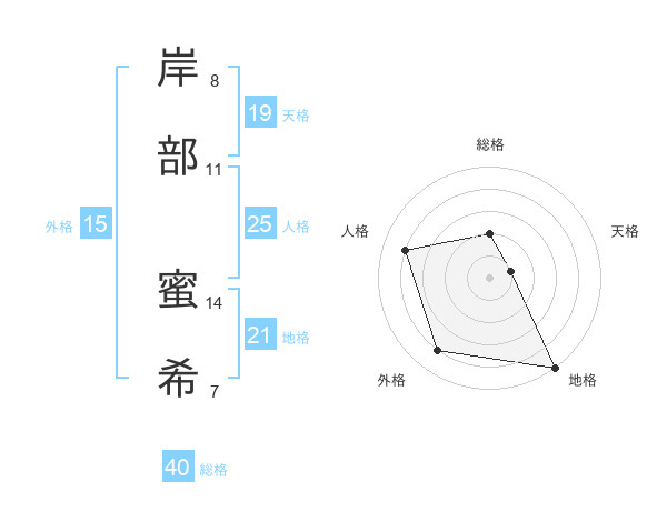 岸部 蜜希さんを姓名の画数から五運を鑑定