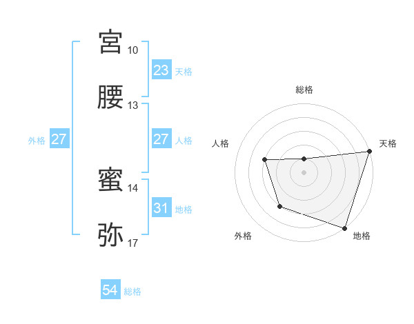 宮腰 蜜弥さんを姓名の画数から五運を鑑定