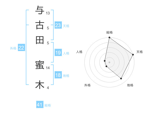 与古田 蜜木さんを姓名の画数から五運を鑑定
