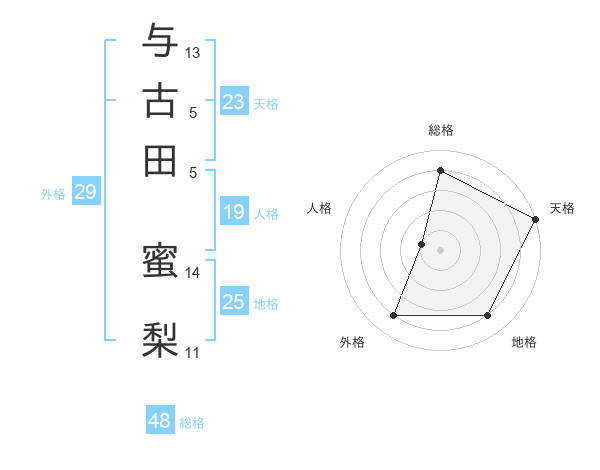与古田 蜜梨さんを姓名の画数から五運を鑑定