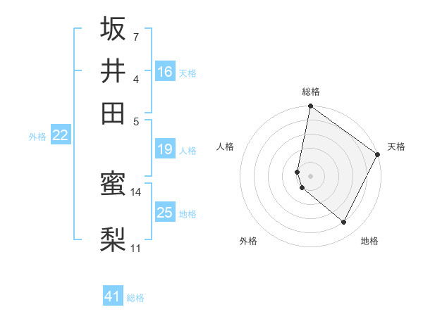 坂井田 蜜梨さんを姓名の画数から五運を鑑定