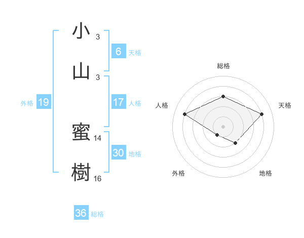 小山 蜜樹さんを姓名の画数から五運を鑑定