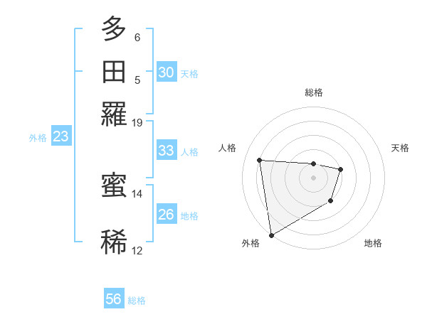 多田羅 蜜稀さんの総格は56画の1点!