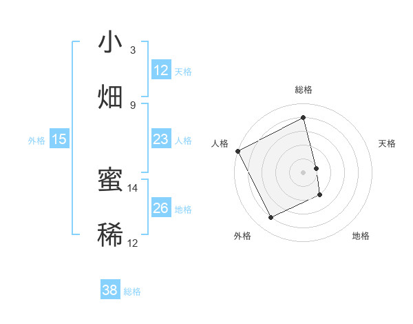 小畑 蜜稀さんを姓名の画数から五運を鑑定