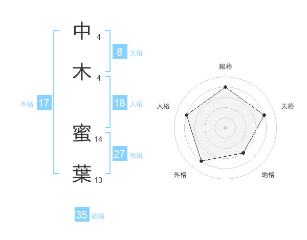 中木 蜜葉さんの総格は35画の4点!