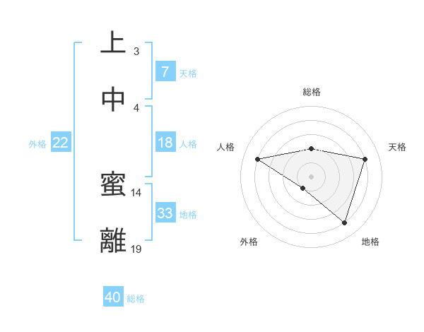 上中 蜜離さんの外格は22画の1点!