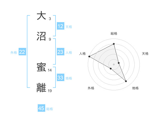 大沼 蜜離さんを姓名の画数から五運を鑑定