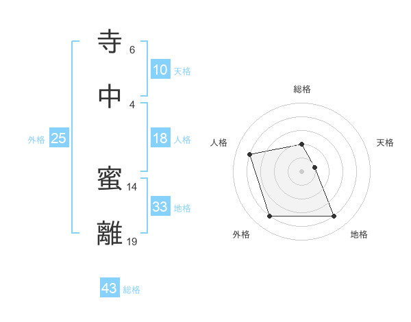 寺中 蜜離さんを姓名の画数から五運を鑑定