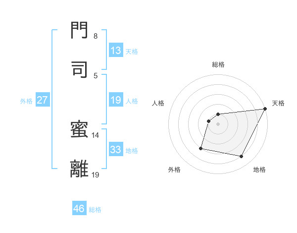門司 蜜離さんを姓名の画数から五運を鑑定