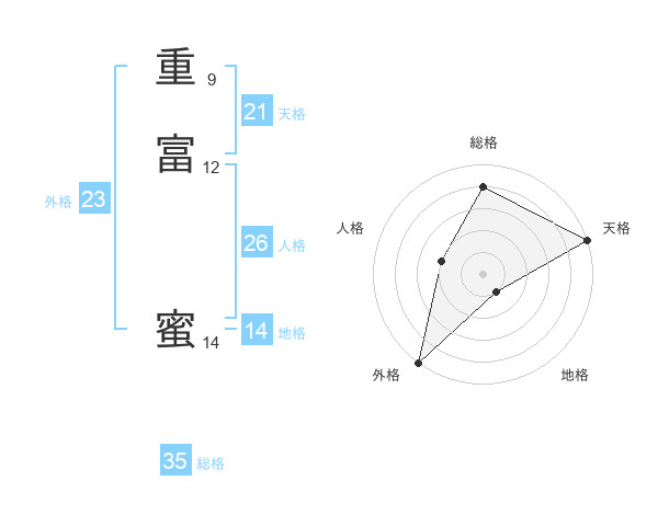 重富 蜜さんの総格は35画の4点!