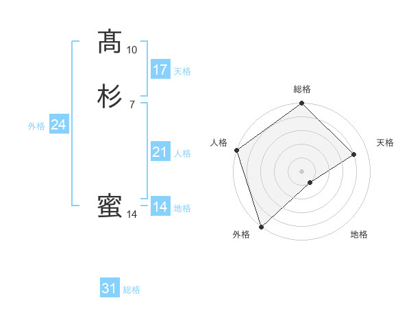 髙杉 蜜さんを姓名の画数から五運を鑑定