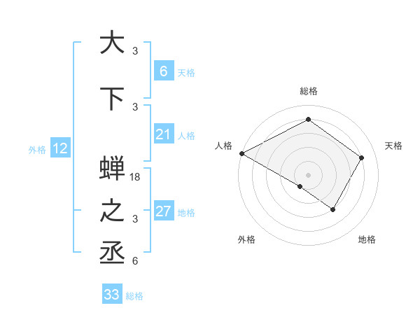大下 蝉之丞さんを姓名の画数から五運を鑑定