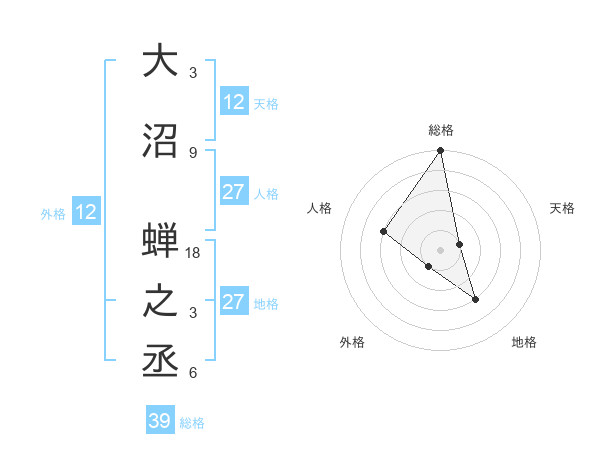 大沼 蝉之丞さんの総格は39画の5点!