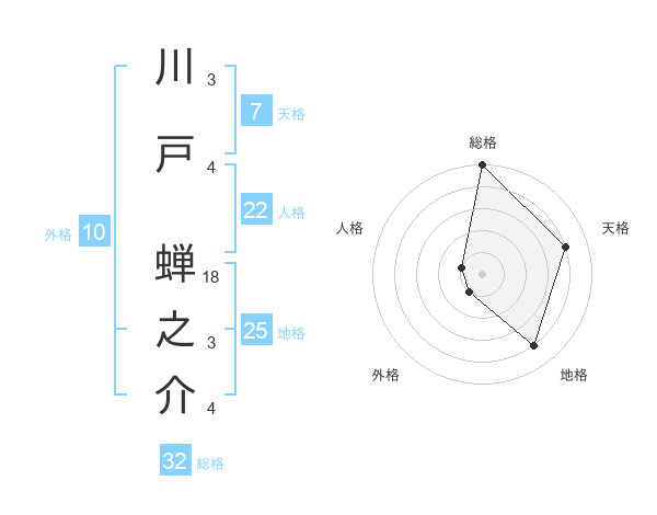 川戸 蝉之介さんを姓名の画数から五運を鑑定