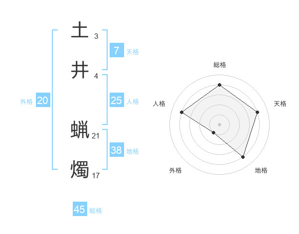 土井 蝋燭さんの地格は38画の4点!