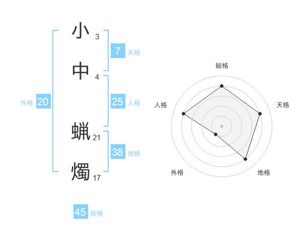 小中 蝋燭さんの総格は45画の4点!
