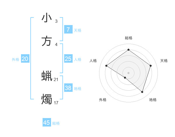 小方 蝋燭さんを姓名の画数から五運を鑑定