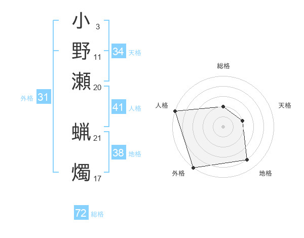 小野瀬 蝋燭さんを姓名の画数から五運を鑑定