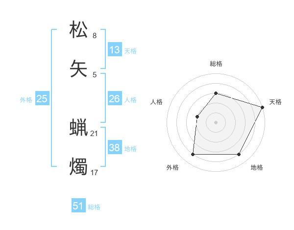 松矢 蝋燭さんを姓名の画数から五運を鑑定