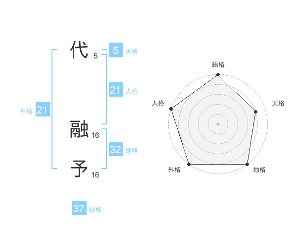 代 融予さんの総格は37画の5点!