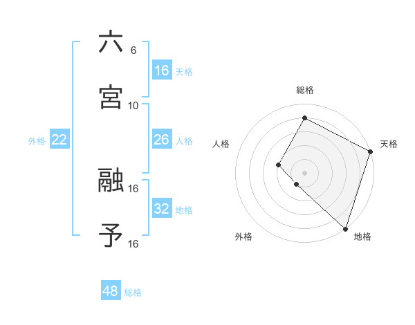 六宮 融予さんの総格は48画の4点!