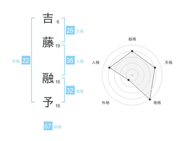 吉藤 融予さんの総格は57画の4点!