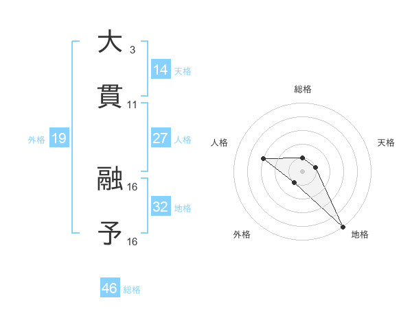 大貫 融予さんを姓名の画数から五運を鑑定
