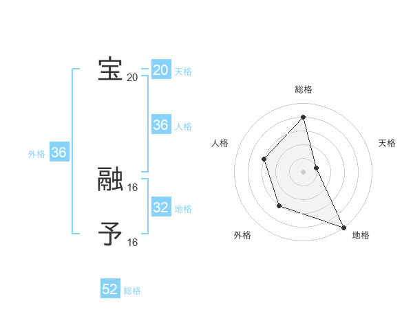 宝 融予さんの総格は52画の4点!