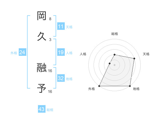 岡久 融予さんの総格は43画の2点!