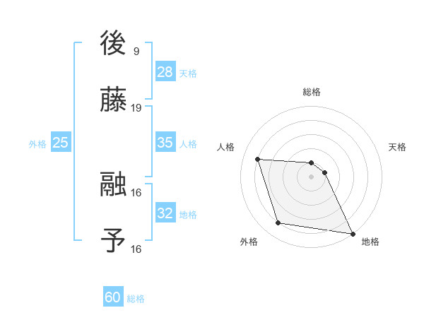 占い結果は姓名判断である以上、良い場合も悪い場合もありますが、決してお名前を誹謗中傷するものでなく、画数の自動計算によって得られたものです。また、本サイトの検索によって得られた鑑定結果で、第三者を誹謗中傷したり名誉を棄損するような行為を禁じます。