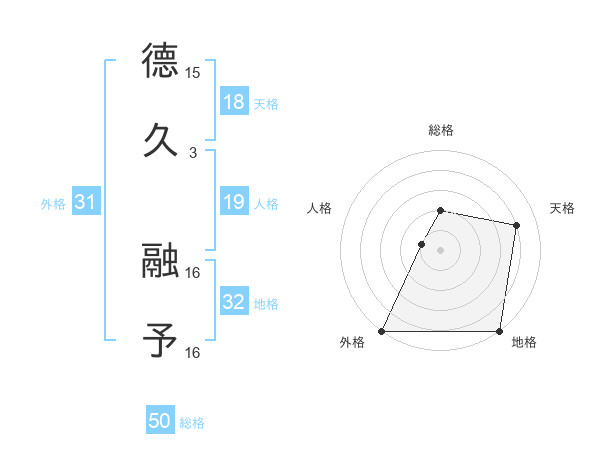 德久 融予さんの総格は50画の2点!