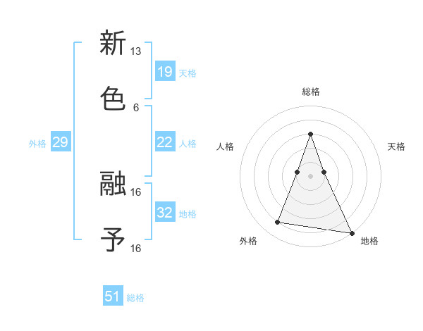 新色 融予さんの総格は51画の3点!