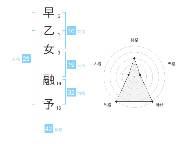 早乙女 融予さんの総格は42画の3点!