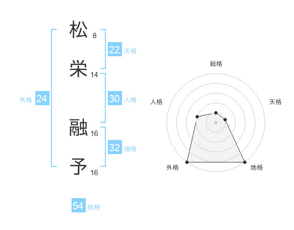 松栄 融予さんの総格は54画の1点!
