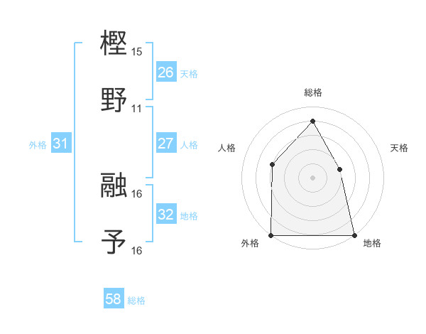 樫野 融予さんの外格は31画の5点!