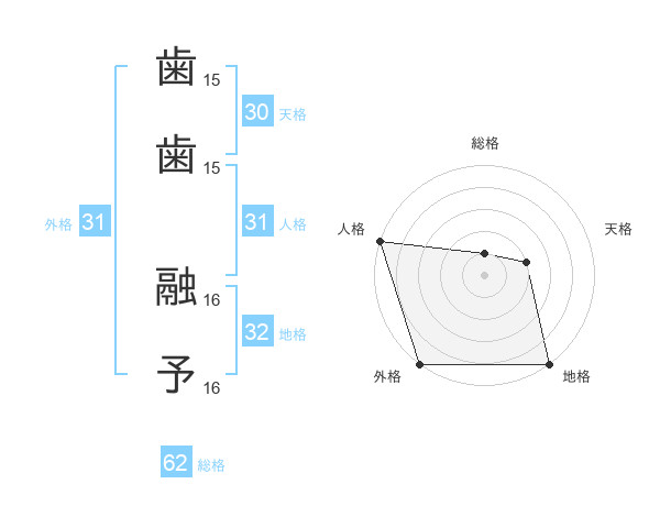 歯歯 融予さんを姓名の画数から五運を鑑定