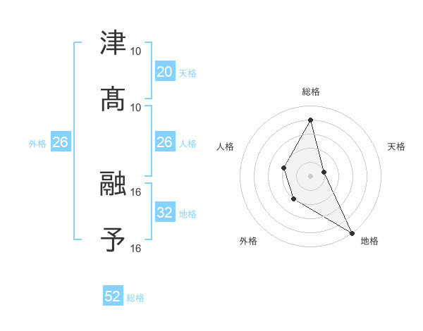 津髙 融予さんの総格は52画の4点!