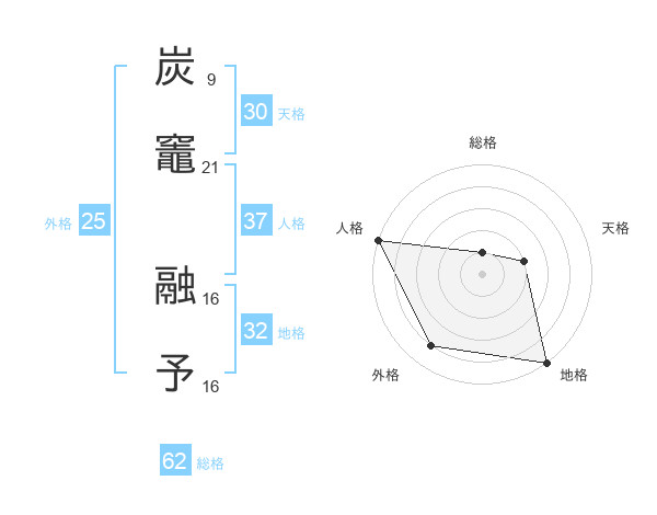 炭竈 融予さんを姓名の画数から五運を鑑定