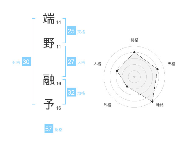 端野 融予さんの総格は57画の4点!
